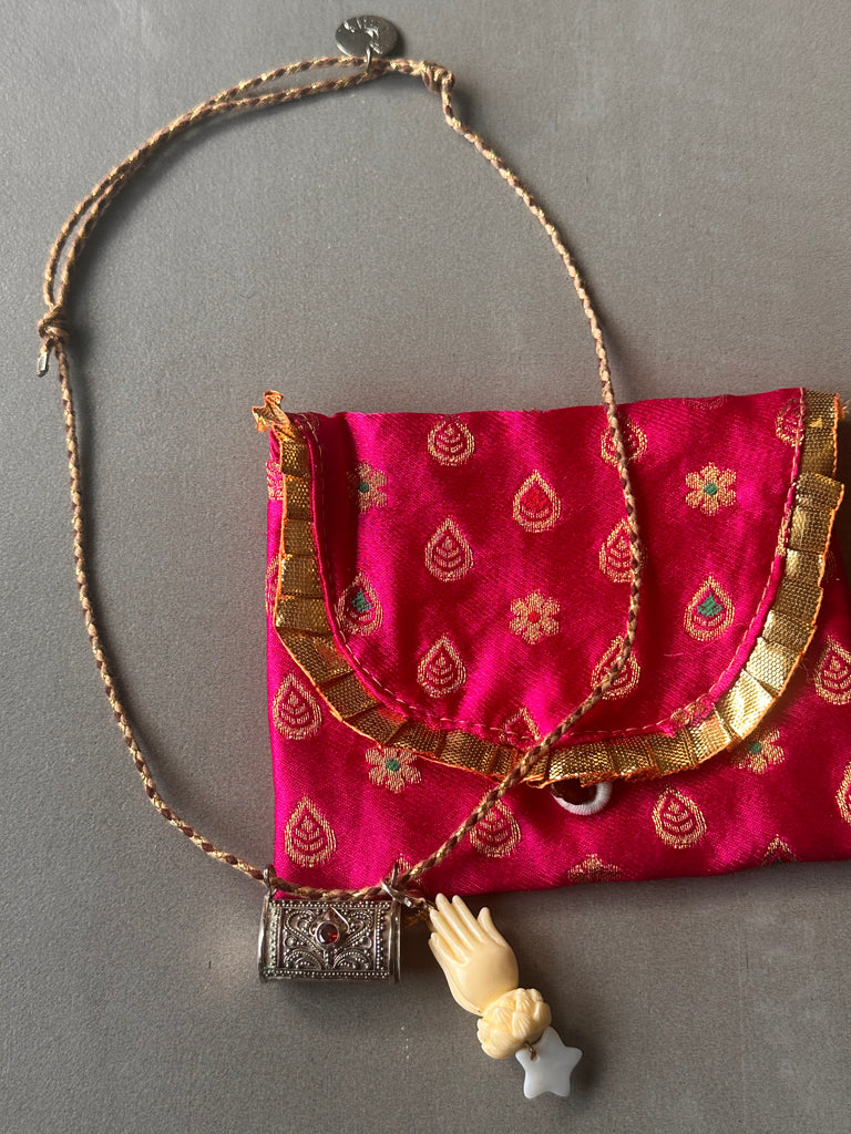 Tous ces bijoux sont livrés dans leur pochon de soie en sari.