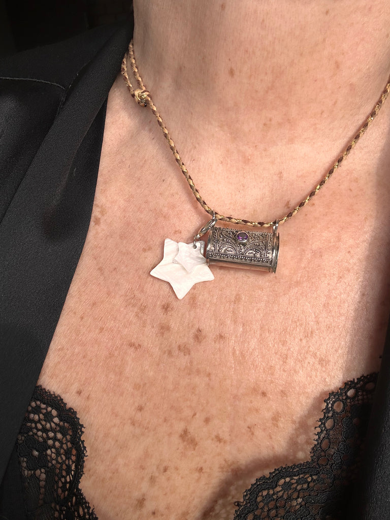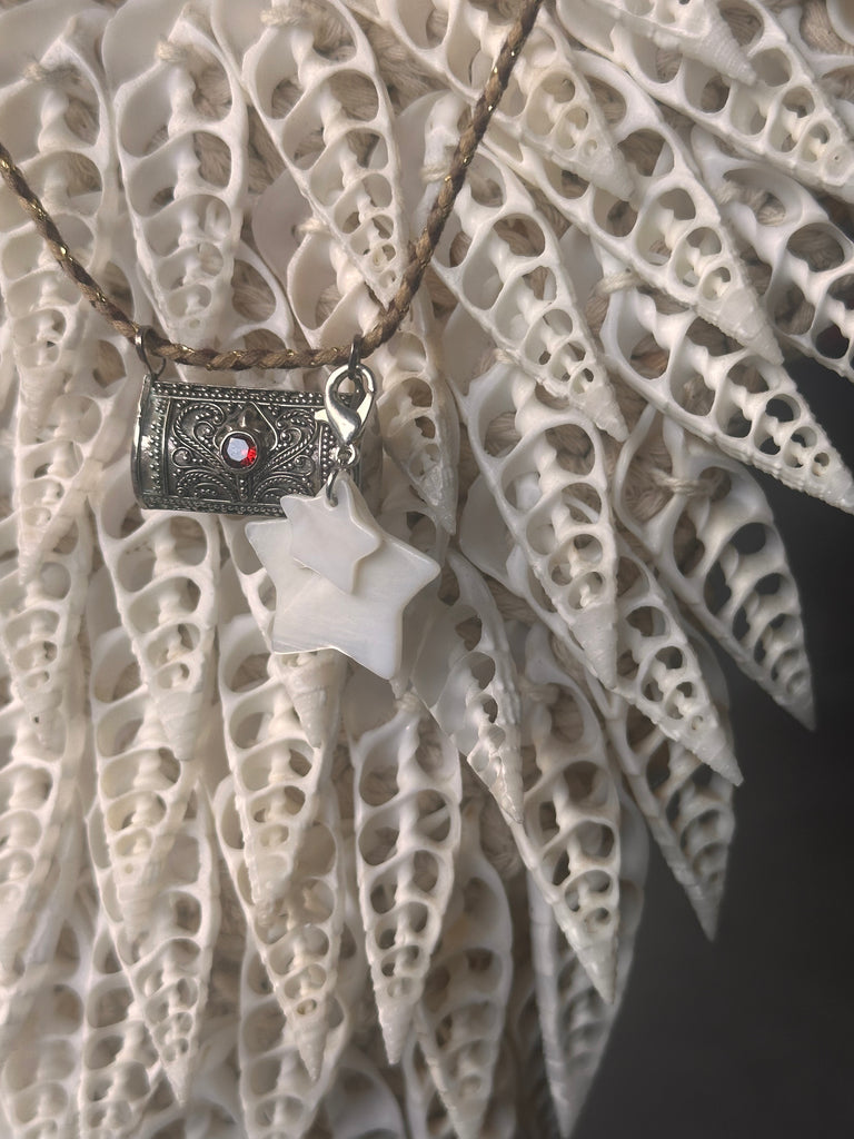 Charm amovible de deux étoiles en nacre sur mousqueton en acier qui lui permet de se placer sur tous vos colliers ou bracelets